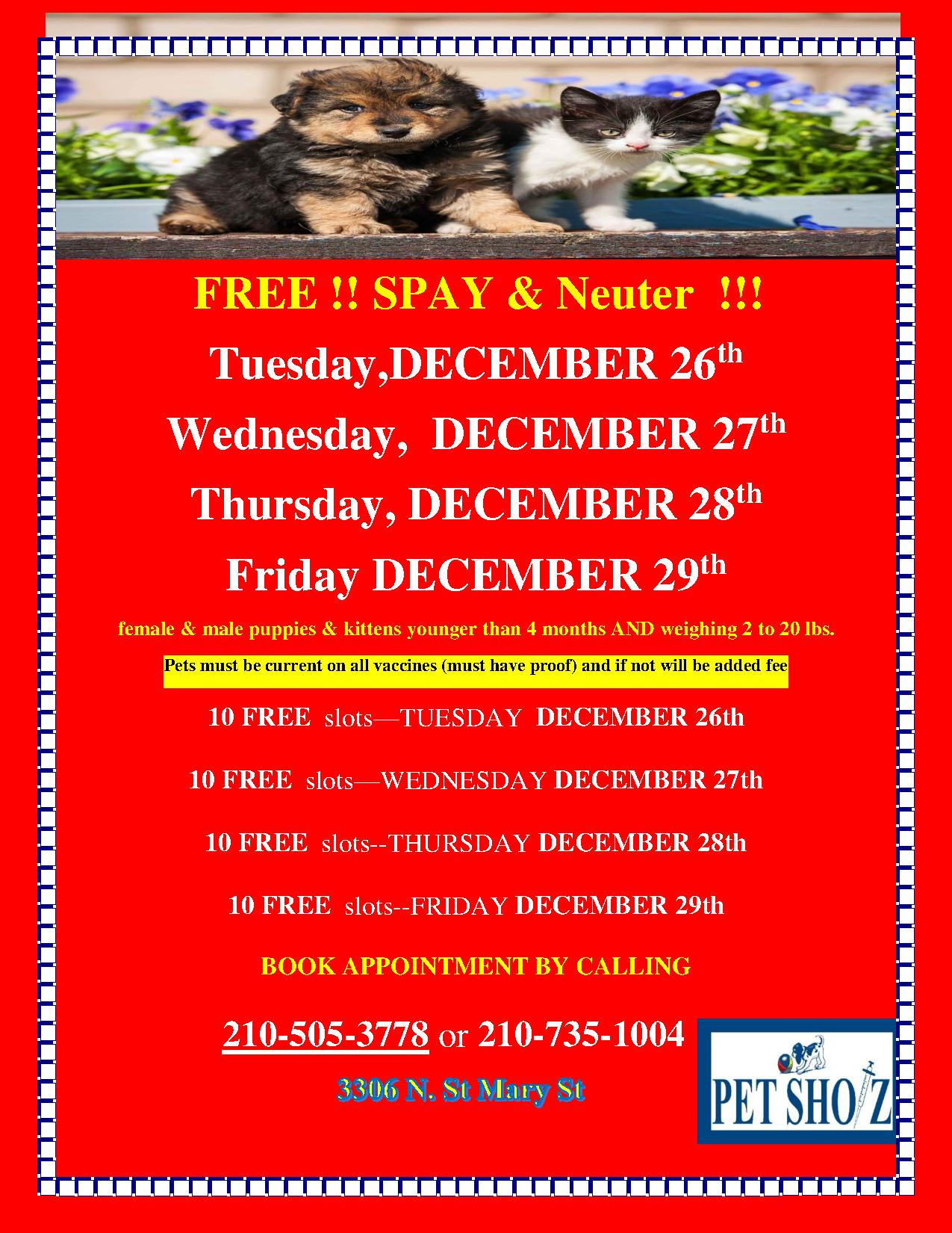 SPAY NEUTER SCOOTER SpecialsFlyer DECEMBER 26- DECEMBER 29 2023 Published December 25, 2023 at 1275 × 1650 in SPAY NEUTER SCOOTER SpecialsFlyer DECEMBER 26- DECEMBER 29 2023