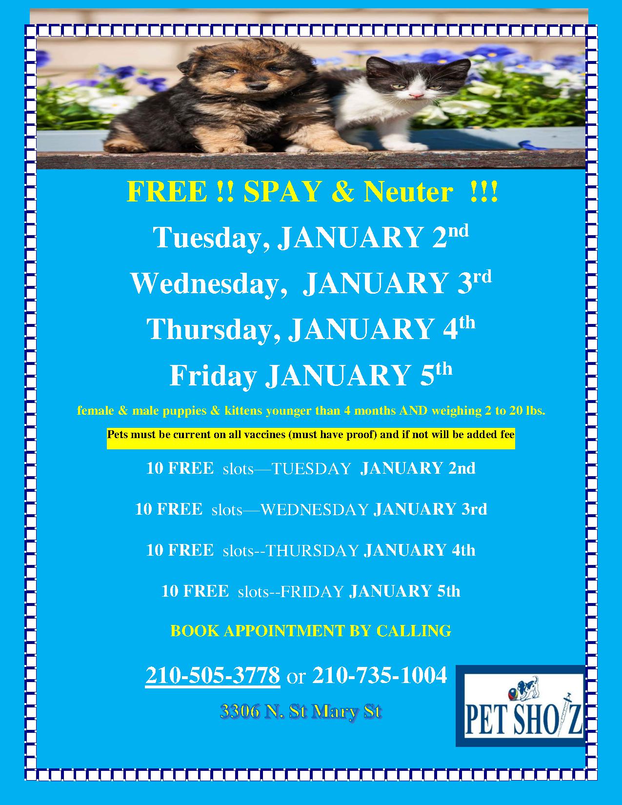 SPAY NEUTER SCOOTER SpecialsFlyer JANUARY 2- JANUARY 5 2023